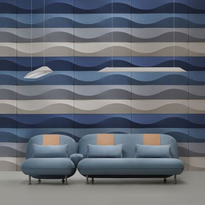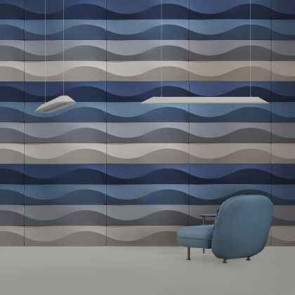 Metamorphosis Akustik Panel, dalgalı yüzey tasarımıyla yankıyı azaltır, mekâna dinamik bir görünüm ve akustik denge kazandırır.